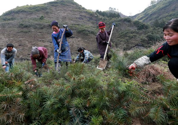 2月25日,通道侗族自治县万佛山镇地坪村苗木种植基地,村民在采挖杉树苗出售。近年来,该县发挥林地资源、水资源丰富的优势,吸引外来客商投资兴办苗木产业。目前,通过“合作社+农户+基地”发展的苗木种植超5000余亩,为当地农民增收致富开辟了门路。