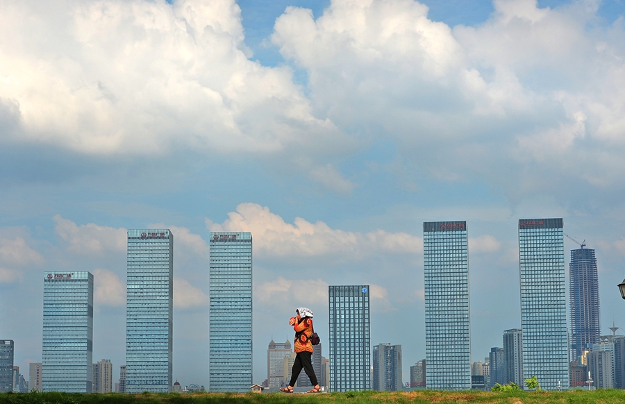 6月24日,长沙市潇湘中路,一位市民在艳阳天出行。当天,我省大部地区放晴,气温上扬。省气象台预计,未来一周,省内热度将不断提升,高温天气成主角。
