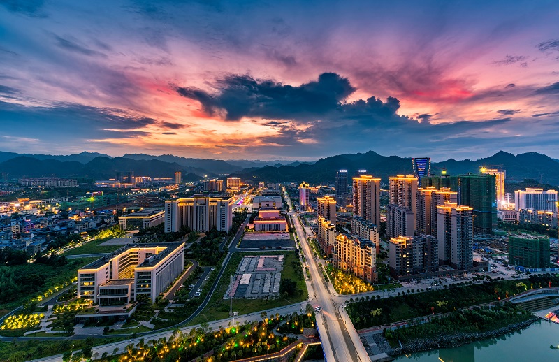 7月9日傍晚,湘西经济开发区,绚丽的晚霞与城市灯光交相辉映。今年以来,该区进一步完善城市基础设施建设,打造城市靓丽景观,形成了宜居、宜业、宜游的城市格局,成为武陵山区的一颗明珠。 张术杰 刘振军 摄影报道
