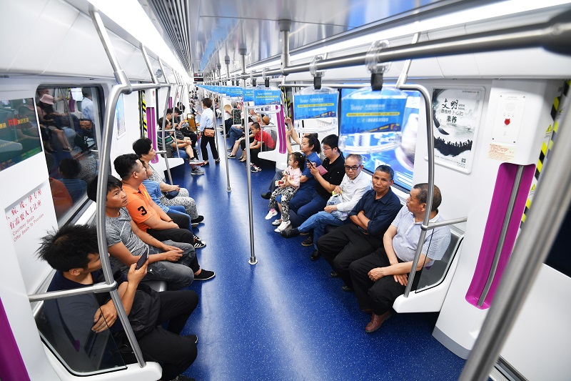 5月26日中午,市民乘坐长沙地铁4号线列车出行。当天,长沙地铁4号线一期工程正式载客试运营。