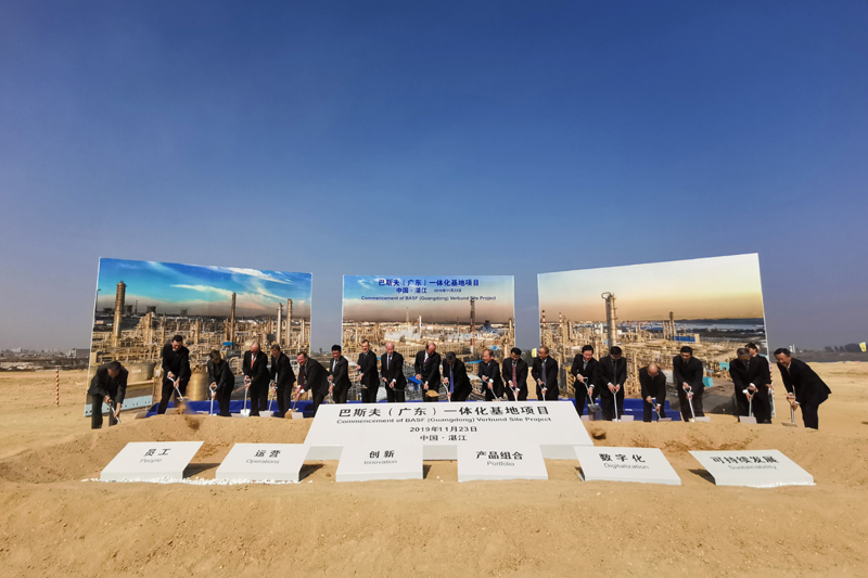随着中德双方代表铲动第一铲土,巴斯夫(广东)一体化基地项目建设正式启动。这是中国首个外商独资大型石化一体化项目,预计投资总额100亿美元,建设时间跨度持续到2030年。