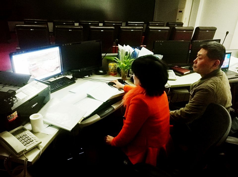 2月15日(除夕),株洲市地方海事局工作人员在监控中心查看全市渡运运行情况。