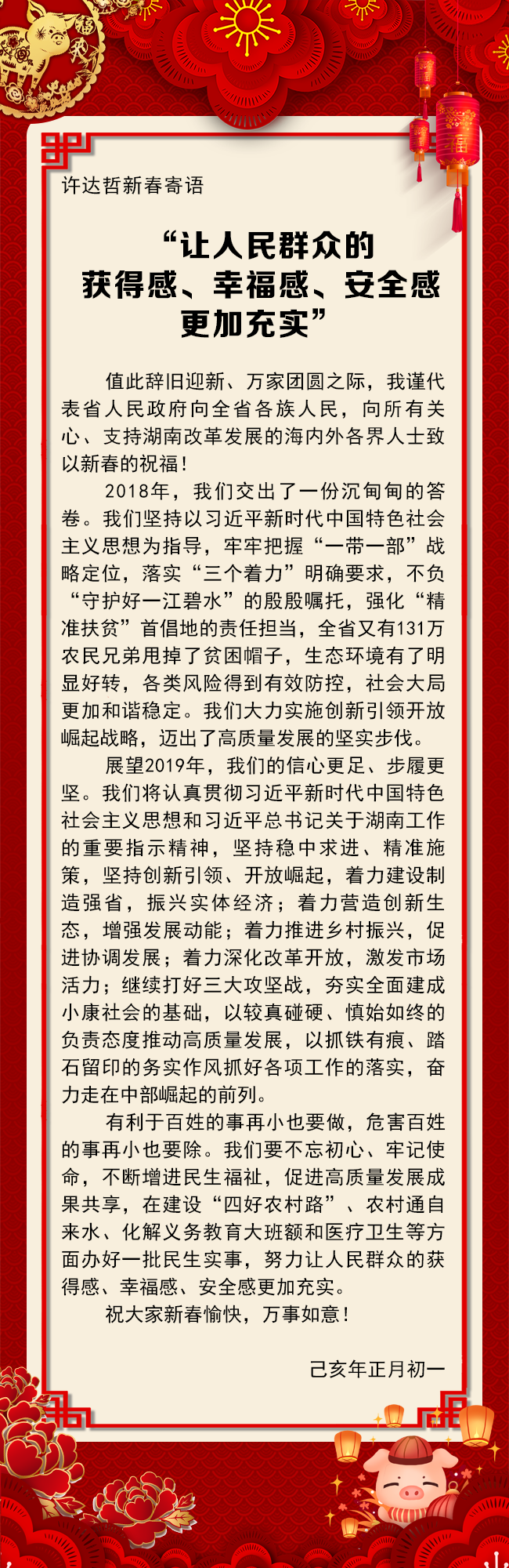 许达哲新春寄语:让人民群众获得感幸福感安全感更加充实