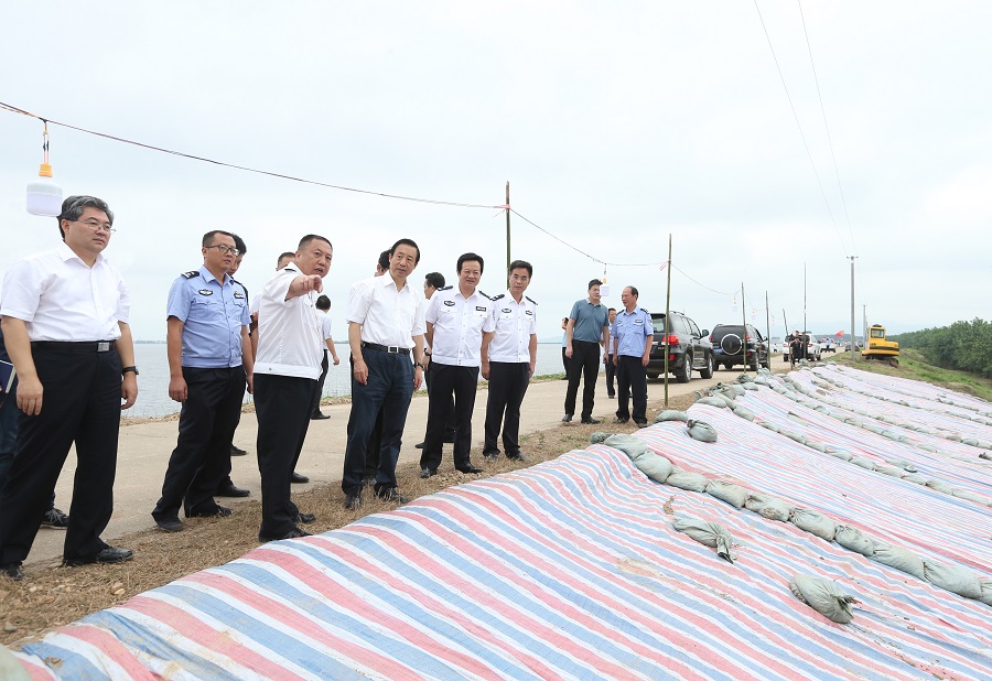 7月26日,省委副书记、省长许达哲在岳阳检查防汛工作,看望慰问一线防汛人员。他强调,要增强风险意识、忧患意识、责任意识,做好打防汛救灾持久战的万全准备,坚决守护好人民群众生命财产安全。调研期间,许达哲会见了来湘考察调研的国家防总副总指挥、水利部部长鄂竟平一行。