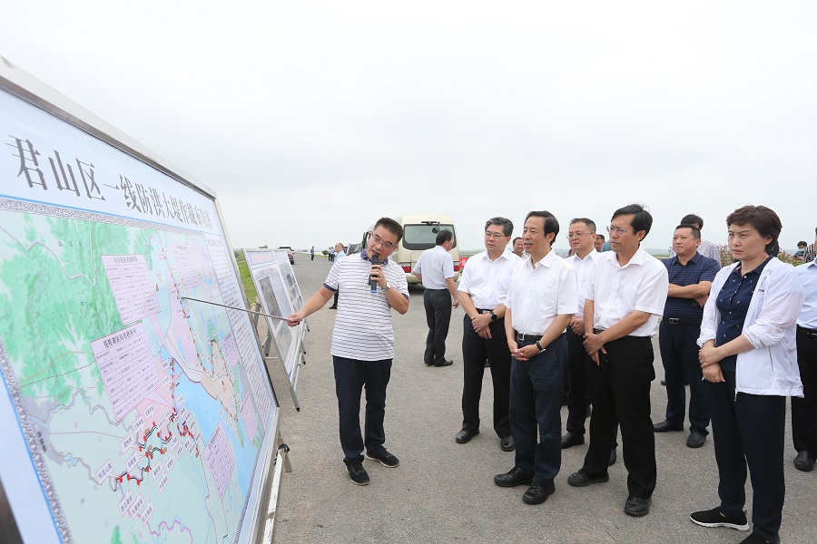 许达哲在君山区检查君山区长江一线防洪大堤的布防情况