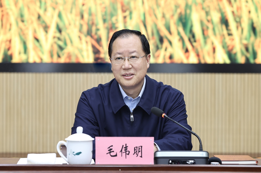 毛伟明强调,湖南是农业大省,要始终把解决农业农村农民问题作为重中之重,把确保重要农产品特别是粮食供给作为乡村振兴首要任务,加快推进农业现代化,推动农村一二三产业融合发展,创新乡村治理方式,把农村建设成农民的幸福家园。要完成全年“三农”工作目标,做到“四个严守”。严守稳产保供底线,严守耕地保护红线,严守防止规模性返贫底线,严守农村生态环境防线,确保全年粮食播种面积7100万亩以上、产量 603亿斤以上,确保耕地保有量不少于5956万亩。要全面推进乡村振兴,做到“三个完善”。不断完善工作推进、土地用管和资金保障机制,激发农民内生动力和乡村发展活力。要促进农村一二三产业融合发展,做到“三个突出”。突出融合平台建设、突出融合重点、突出品牌引领,跨界配置农业和现代产业元素,形成“农业+”多业态发展态势。要加快打造种业创新基地,做到“三个加快”。以省部共建共同打造种业创新基地为契机,加快岳麓山种业创新中心建设,加快推进种业龙头企业发展壮大,加快种质资源高效保护利用,坚决“打好种业翻身仗”。要积极推进湘赣边区域合作示范区建设,做到“三个统筹”。统筹推进区域示范,统筹城乡融合,统筹项目合作,切实将革命老区打造成乡村振兴示范区。