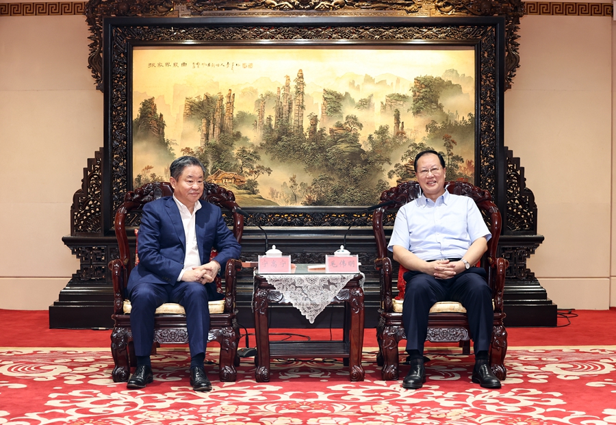 毛伟明对中国中化长期以来给予湖南经济社会发展的支持表示感谢。他说,当前,湖南正积极抢抓习近平总书记考察湖南以及中央出台《关于新时代推动中部地区高质量发展的意见》带来的重大历史机遇,大力实施“三高四新”战略,奋力建设现代化新湖南。立足新发展阶段,湖南致力科技自立自强、致力优化营商环境、致力“五好”园区建设、致力引湘商建故乡,区位优势更加凸显、产业优势更加鲜明、竞争态势更加强劲,呈现出农业基础不断夯实、工业主导地位明显提升、高新技术产业加快集聚、现代服务业蓬勃发展的态势。中国中化是全球规模最大的综合性化工企业之一,与湖南有着良好的合作关系。希望双方聚焦种业创新、绿色化工、新材料、新能源等领域,进一步拓展合作空间,提升合作水平,实现互利共赢。