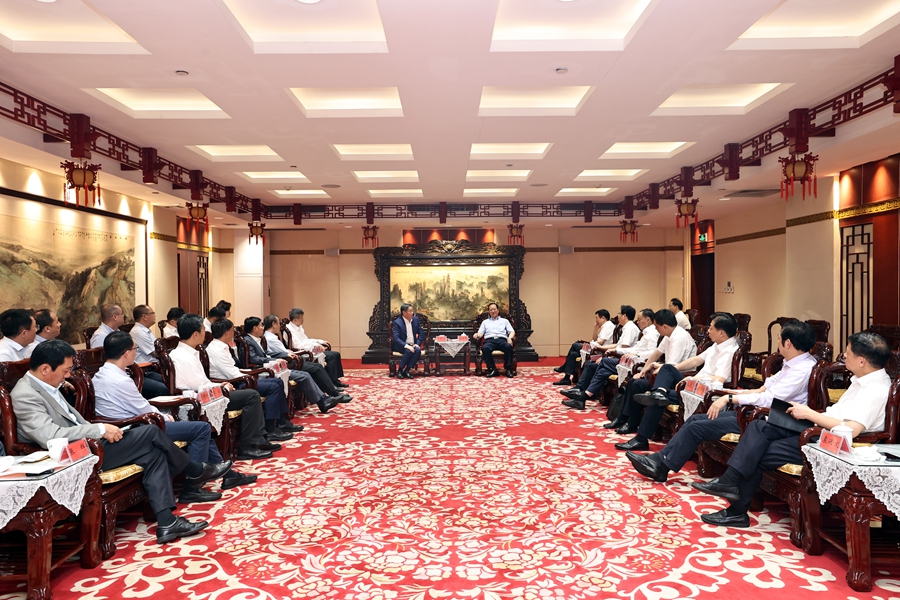 9月30日中午,省委副书记、省长毛伟明在长沙与中国中化控股有限责任公司党组书记、董事长宁高宁一行座谈。