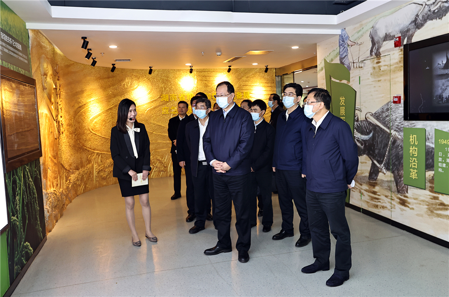 毛伟明一行先后来到湖南粮食集团储粮示范仓、省粮油产品质量检测中心等,考察粮食储存、粮油产品质量监测等工作。他强调,粮食安全是“国之大者”。要扎实做好粮食收储、轮换和管理工作,全面加强粮食质量安全管理,确保“把中国人的饭碗牢牢端在自己手中”。