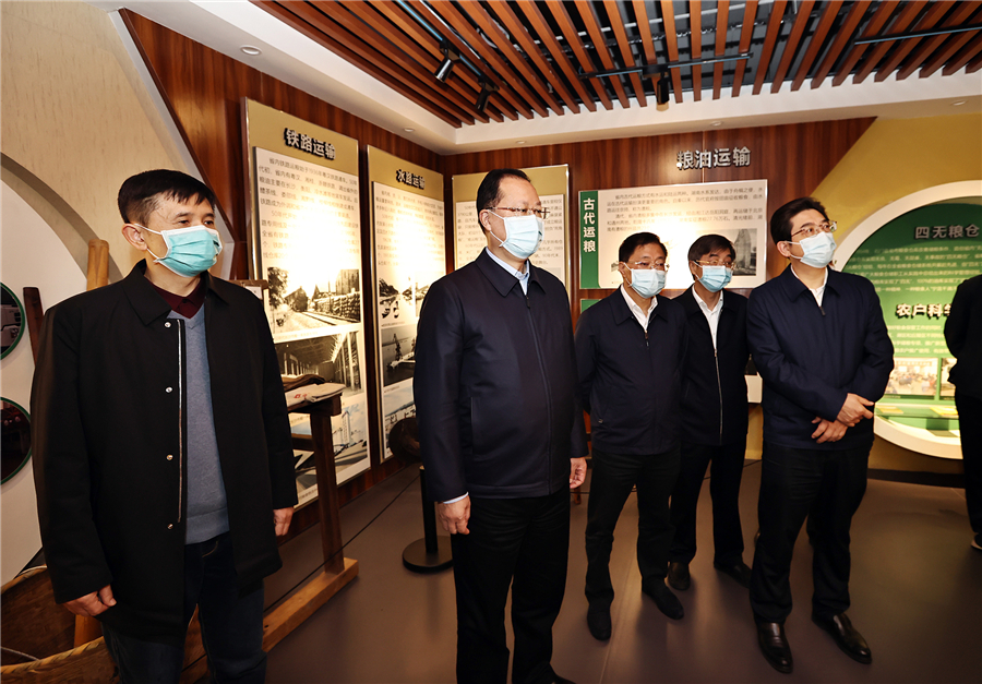 毛伟明来到省粮食和物资储备局,了解我省粮食收储发展情况。