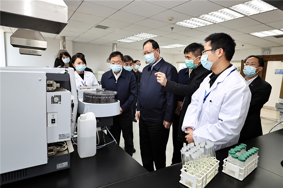 毛伟明来到省粮油产品质量检测中心察看粮油产品质量检查情况。