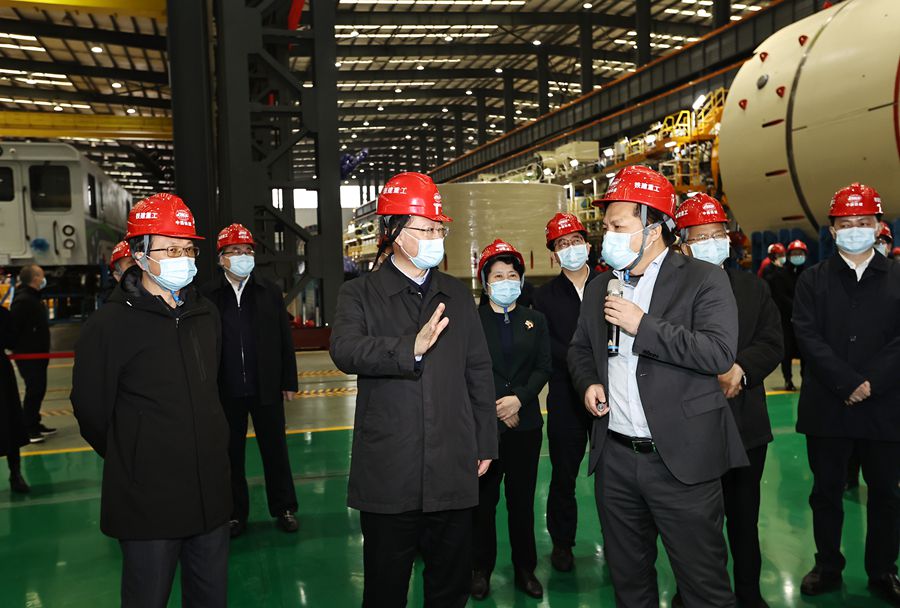 毛伟明来到中国铁建重工集团,检查疫情防控和经济社会发展情况。