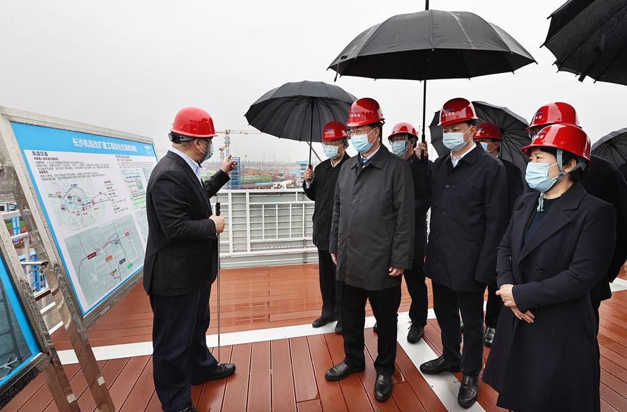 毛伟明来到长沙机场改扩建工程工地,检查疫情防控和经济社会发展情况。