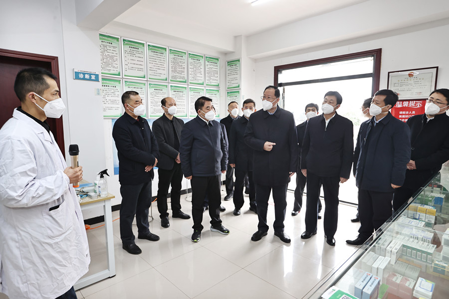 1月19日上午,省委副书记、省长毛伟明来到湘阴县樟树镇柏金港村卫生室,督导检查农村疫情防控工作。