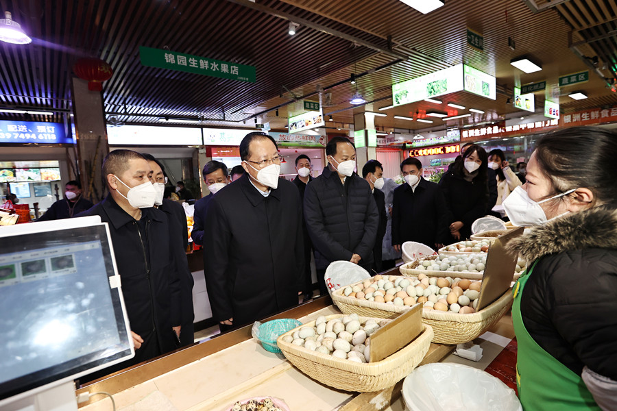 19日下午,毛伟明来到长沙市湘江新区锦园生鲜市场,检查春节期间“菜篮子”保供稳价情况。以上照片均由湖南日报全媒体记者 刘尚文 摄