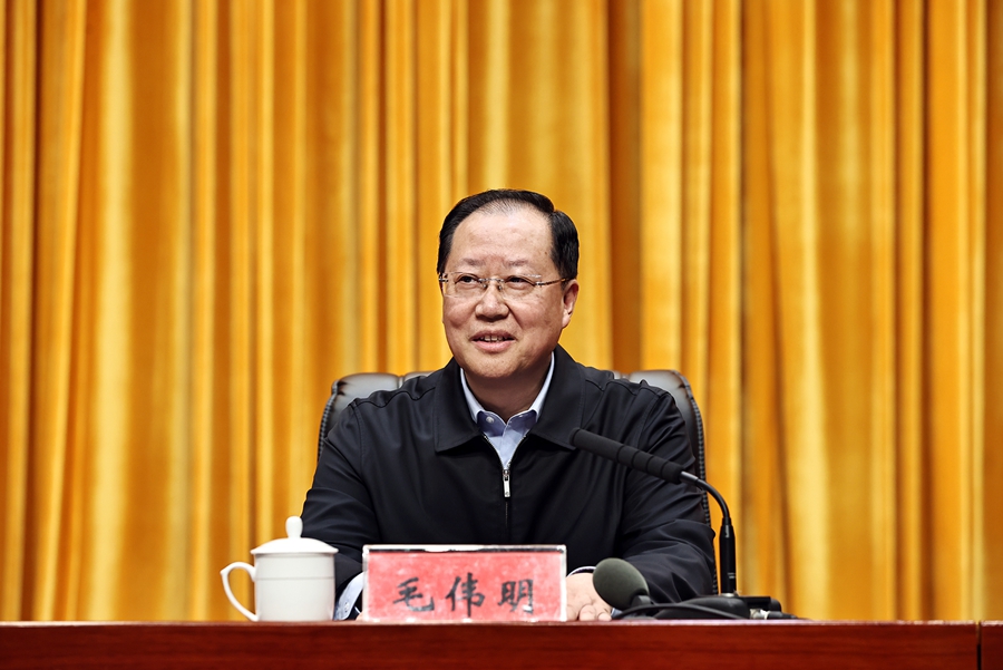 毛伟明指出,今年3月18日至21日,习近平总书记时隔4年再次亲临湖南考察,并在湖南主持召开新时代推动中部地区崛起座谈会,对于我们锚定“三高四新”美好蓝图,推进中国式现代化湖南实践具有历史性、全局性、开创性的里程碑意义。考察期间,习近平总书记从中国式现代化的大场景、从党和国家工作大格局为湖南把脉定向、指航引路,深刻阐明了事关湖南改革发展的一系列根本性、方向性、全局性问题,为湖南锚定了新坐标、明确了新定位、赋予了新使命。习近平总书记博大的人民情怀、崇高的历史担当以及对湖南的厚重期许,让全体湖南人民深受鼓舞、倍感振奋,全省上下要深刻领会习近平总书记重要讲话和指示的核心要义、精神实质、丰富内涵、实践要求,以舍我其谁的使命感、不进则退的危机感、时不我待的紧迫感、勇于担当的责任感,奋力谱写中国式现代化湖南篇章。