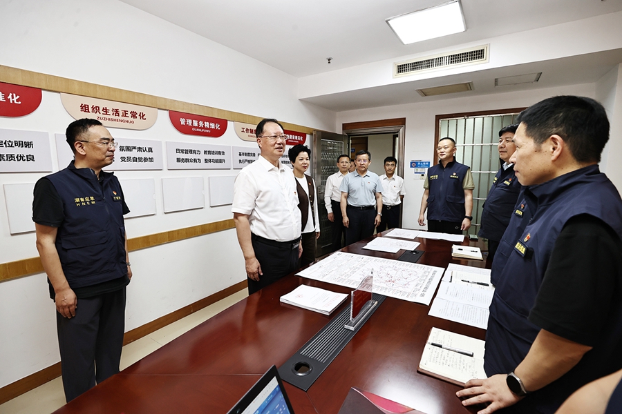 毛伟明说,6月16日以来,我省遭遇持续强降雨天气、局地特大暴雨,部分地区发生山洪地质灾害,部分河流水位上涨迅猛。6月30日9时,城陵矶水位涨至33米,到达警戒水位,形成“洞庭湖2024年第1号洪水”,同时强降雨带仍在湘中及以北、湘中偏南地区摆动,全省进入了山区需严密防范突发地质灾害、河湖沿线需坚决守牢堤垸的“两线作战”关键时刻。一个共产党员就是一棵青松、一个标杆、一面旗帜,我们要坚持“人民至上、生命至上”,时刻牢记为人民服务的宗旨,把党的战斗堡垒牢牢筑在防汛抗灾工作最前沿,发扬冲锋在前、连续作战的优良作风,以“时时放心不下的责任感”,密切监控雨情水情变化,强化应急值班值守,确保信息报送及时规范、应急处置快速高效,为夺取防汛抗灾全面胜利贡献力量。