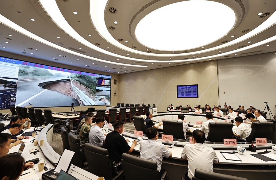 毛伟明强调,要立足于“早”、聚焦于“防”,强化研判分析、强化预警转移、强化巡查排险,坚持预判在前、分析在前、动员在前、转移在前,严格落实“631”预警叫应机制和“四个一律”要求,对于中小水库、小水电、中小河流、山洪危险区、超警堤段、险工险段、穿堤建筑物等重点部位,要一米一米地巡、一米一米地查,确保险情早发现、早报告、早处置。要坚持以“讯”战胜好“汛”,抓好叫应响应、抓好抢险处险、抓好救灾减灾,精准调配防汛抢险物资力量,争分夺秒科学组织人员搜救、伤员救治工作,确保受灾群众有饭吃、有衣穿、有临时住所、有干净水喝、有病能及时得到医治。要应用好“导”、发挥好“督”,做到靠前指挥到位、组织发动到位、责任落实到位、宣传引导到位,继续发挥好专家督导指导、干部靠前调度、群众动员参与重要作用,确保“防、抗、救、助”责任链条无缝对接,上下联动、齐心协力,凝聚起防汛抗洪救灾强大合力。
