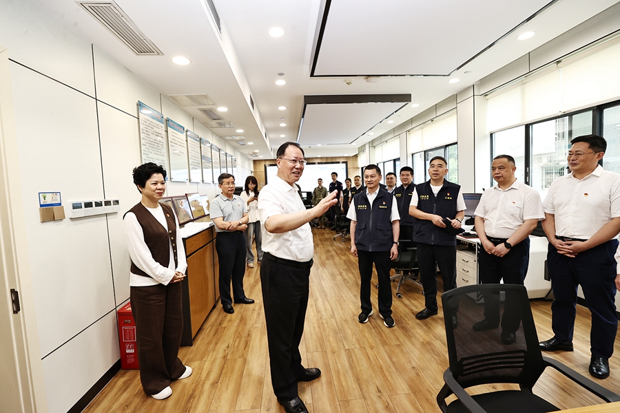 6月30日下午,省委副书记、省长毛伟明在省防汛办救援协调和预案管理处慰问值班值守的党员干部。