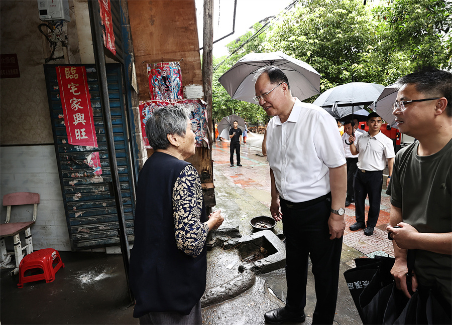 毛伟明在辰溪县辰阳街道东风社区看望慰问受灾群众。