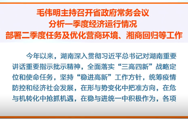 视频 | 毛伟明主持召开省政府常务会议 分析一季度经济运行情况 部署二季度任务及优化营商环境、湘商回归等工作