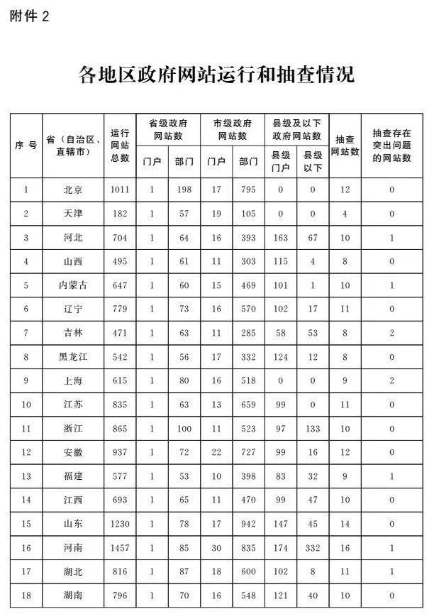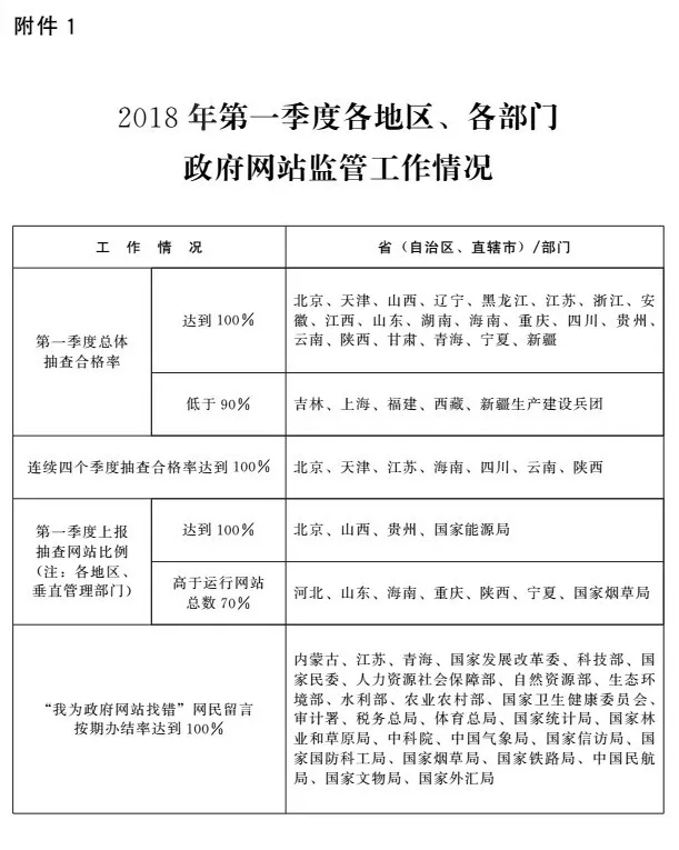 附件:1.2018年第一季度各地区、各部门政府网站监管工作情况