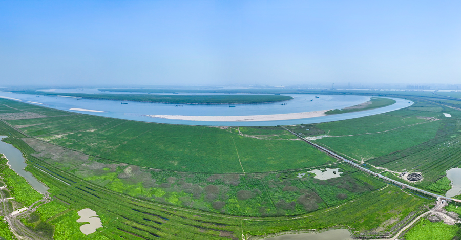 4月8日,岳阳市君山区华龙码头一片青绿,一望无际的芦苇随风荡漾,与一江碧水相得益彰。 湖南日报全媒体记者 辜鹏博 摄