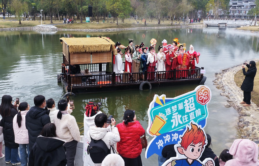 1月1日,宁远县九嶷山景区南风集,游人在参加汉服巡游。当天是2026年的第一天,人们通过多种多样的方式,庆祝新年到来。 黄春涛 李文 摄影报道
