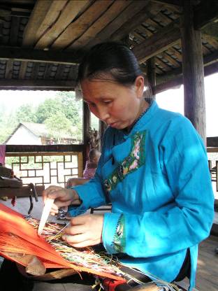刘代娥生活在“女勤于织、户有机声”土家织锦之乡,从12岁开始学织锦。她功底深厚,工艺精湛,所使用的原料仍按传统工艺丝经棉纬或经纬皆丝的要求精心制作,显得精密细腻,很受市场欢迎。