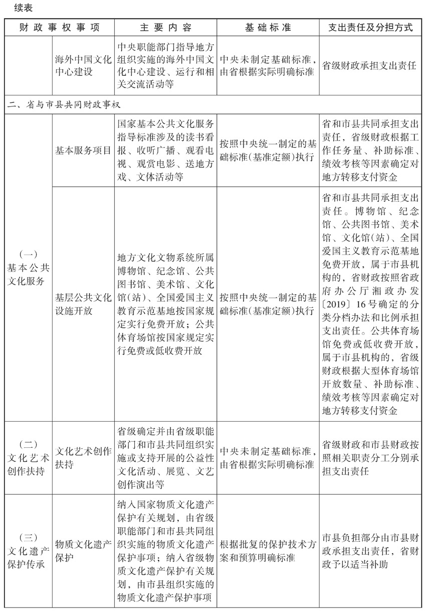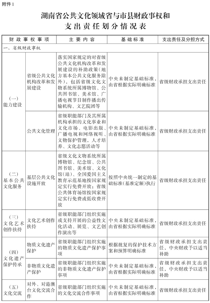 附件:1.湖南省公共文化领域省与市县财政事权和支出责任划分情况表