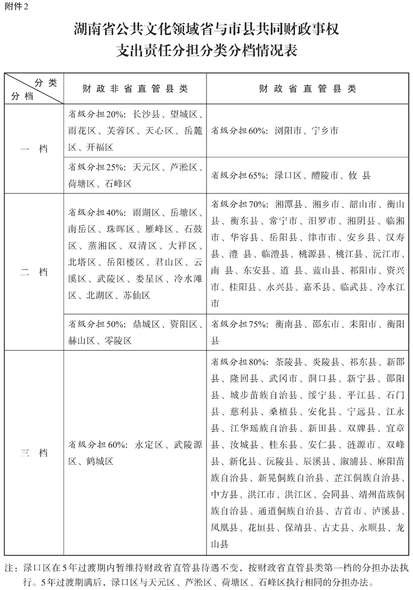 2.湖南省公共文化领域省与市县共同财政事权支出责任分担分类分档情况表