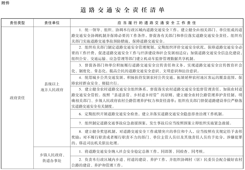 附件:道路交通安全责任清单