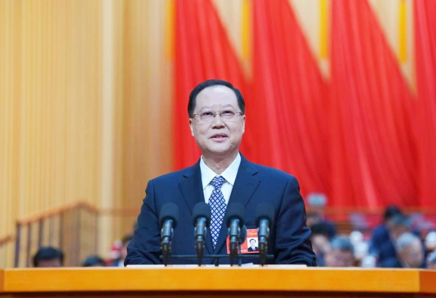 2月3日,湖南省第十四届人民代表大会第四次会议在省人民会堂开幕。省长毛伟明作政府工作报告。湖南日报全媒体记者 刘尚文 摄