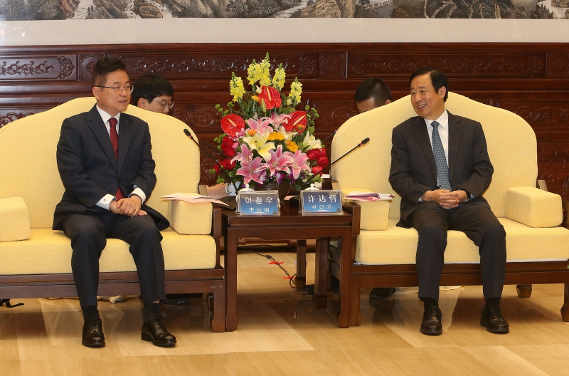 11月29日,我省与韩国庆尚北道在长沙签署建立友好省道关系协议书。省委副书记、省长许达哲会见庆尚北道知事李喆雨,并共同签约。