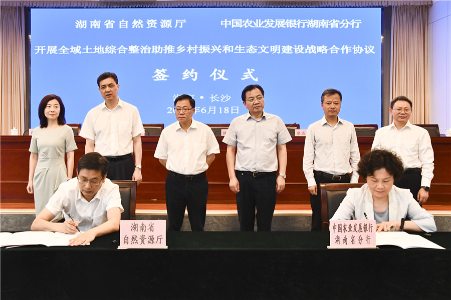 6月18日上午,省自然资源厅与中国农业发展银行湖南省分行共同签署了《开展全域土地综合整治助推乡村振兴和生态文明建设战略合作协议》,“大手笔”推进全域土地综合整治。未来5年,将有不低于1000亿元的意向性融资助力湖南省乡村振兴和生态文明建设。副省长陈文浩出席签约仪式。