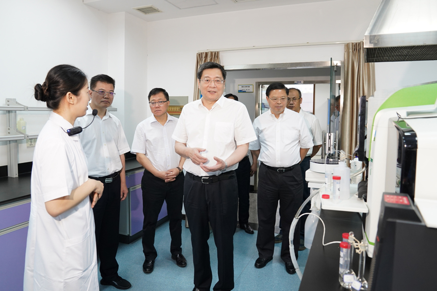 7月20日下午,杜家毫在省生态环境厅考察核与辐射监测实验室。