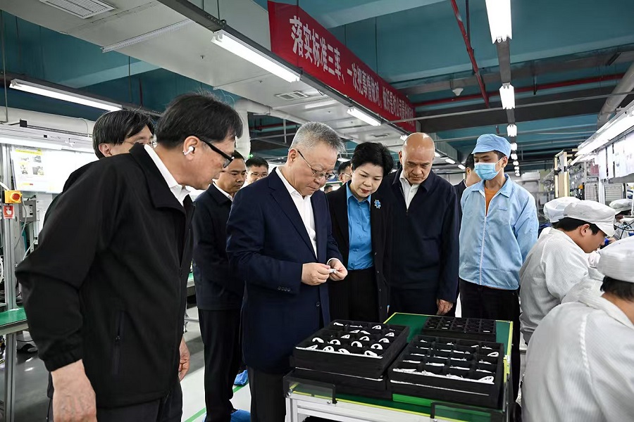 4月24日,沈晓明在湖南加一声学科技有限公司调研。