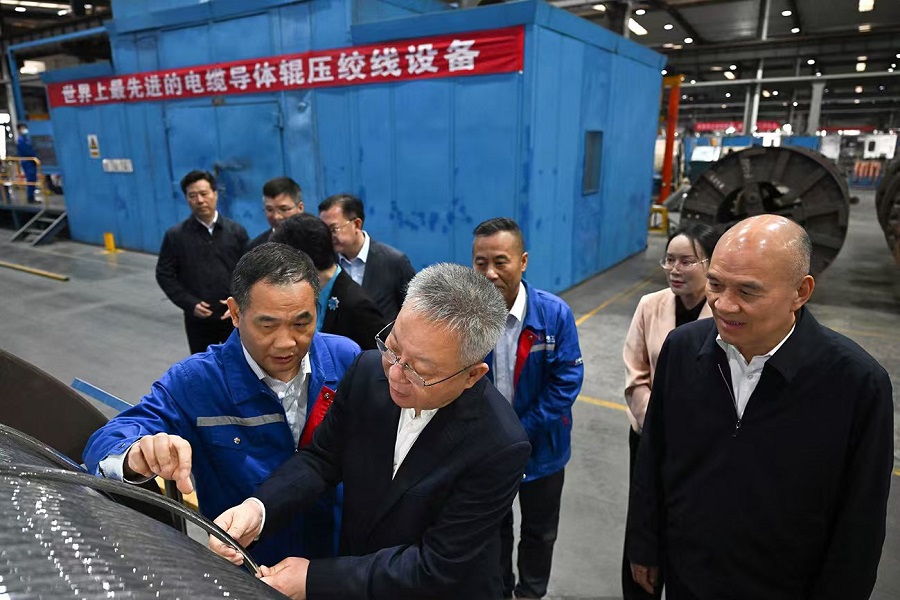 4月24日,沈晓明来到金杯电工智能装备线缆项目调研。