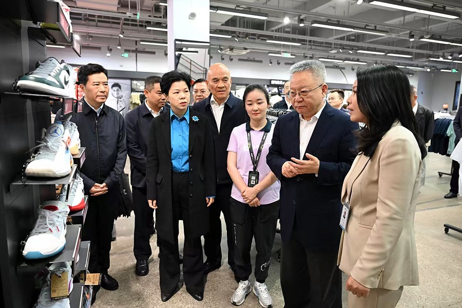 沈晓明先后来到衡阳杉杉奥特莱斯购物广场、湖南加一声学科技有限公司、金杯电工智能装备线缆项目,深入了解活跃居民消费市场、企业生产经营和市场开拓、落实“两重”“两新”政策等情况。