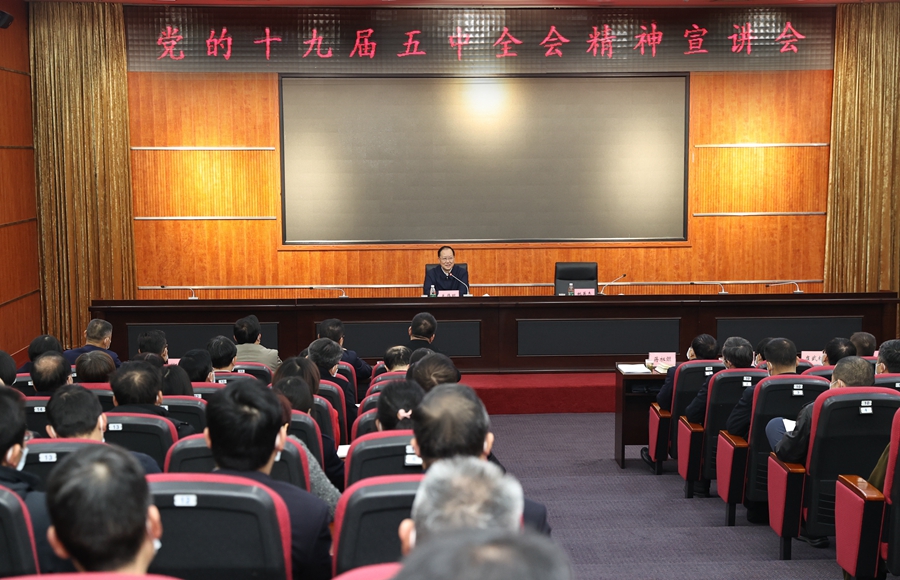 宣讲中,毛伟明指出,党的十九届五中全会是在全面建成小康社会胜利在望、全面建设社会主义现代化国家新征程即将开启的重要历史时刻,召开的一次具有全局性、历史性意义的会议。全会审议通过的《建议》,明确了今后一个时期的指导方针、目标任务、战略部署,为夺取全面建设社会主义现代化国家新胜利擘画了宏伟蓝图。我们要深刻领会党的十九届五中全会精神的核心要义,深刻把握新发展阶段的丰富内涵,自觉贯彻创新、协调、绿色、开放、共享发展理念,主动融入新发展格局,以推动高质量发展为主题,奋力谱写新时代坚持和发展中国特色社会主义的湖南新篇章。