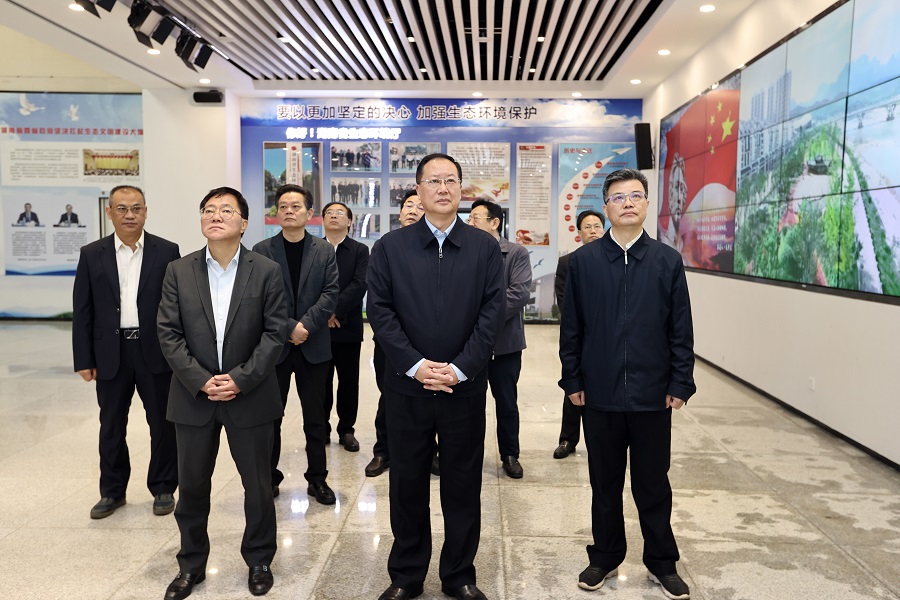 毛伟明一行考察了省生态环境监测中心、应急指挥中心,听取了省生态环境厅汇报。他说,“十三五”以来,全省生态环境系统坚持以习近平新时代中国特色社会主义思想为指导,真抓实干、开拓创新,连续四年打响“夏季攻势”,圆满完成生态环境9项约束性指标,全省空气优良率由2017年的81.4%提高到2020年的91.7%,国考断面达到或优于三类水质比例由2017年的88.3%提高到2020年的93.3%,长江湖南段和湘资沅澧干流稳定达到或优于二类水质,市级黑臭水体整治率达到98.37%,夺取了污染防治攻坚战阶段性胜利,提高了全面建成小康社会的质量成色。