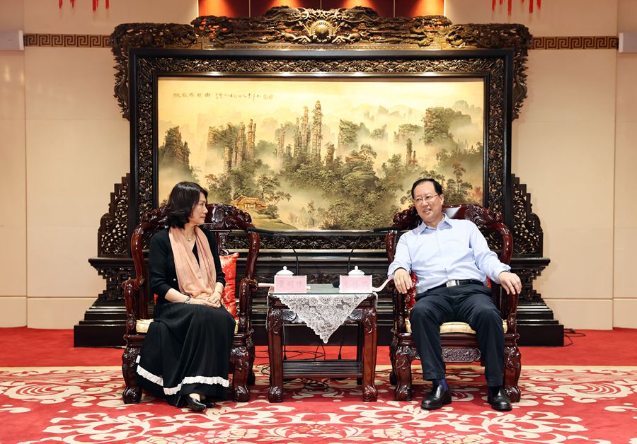 5月13日下午,省委副书记、省长毛伟明与珠海格力电器股份有限公司董事长董明珠座谈并共同见证签约。图为座谈现场。