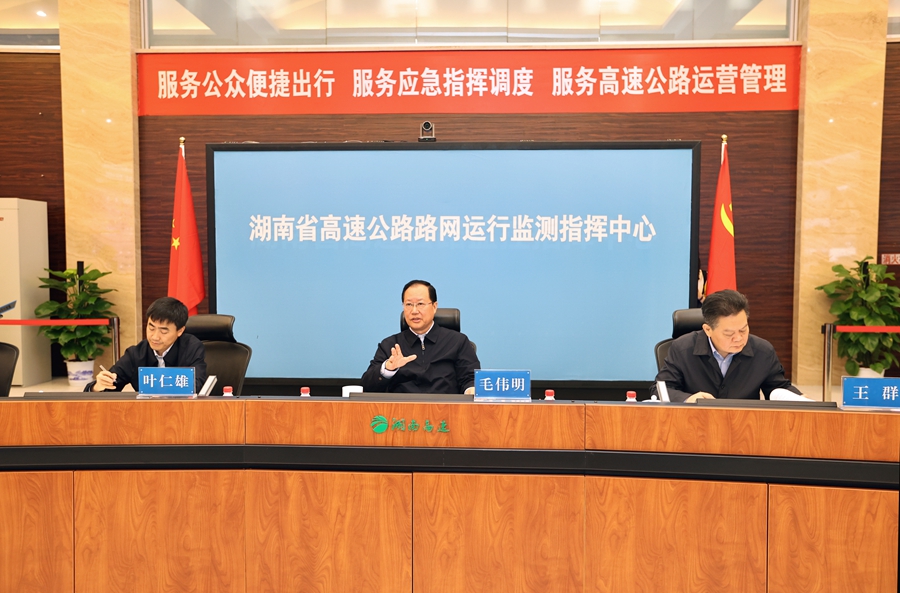 调研中,毛伟明强调,交通是国民经济的战略性、先导性、基础性产业。建设现代化新湖南,必须构建与之相适应的现代化综合交通运输体系。要坚持党对国有企业的全面领导,健全现代企业制度,充分激发企业动力和活力,加快国有经济布局优化和结构调整,做强做优主业,充分发挥国有交通企业在构建现代化综合交通运输体系中的支撑引领作用。要积极融入国际国内双循环发展格局,全面对接交通强国建设纲要,科学谋划推进全省综合交通网络建设,推动“公铁水空”等交通方式的互联互通、无缝对接,构建智慧交通体系,不断提高道路交通管理的精细化、智能化水平。要压紧压实安全责任,提高交通运营和技术设施的网络化、信息化、智能化水平,强化人防和技防的高效融合,全面检视整治盲区死角短板弱项,守住交通运输安全底线。
