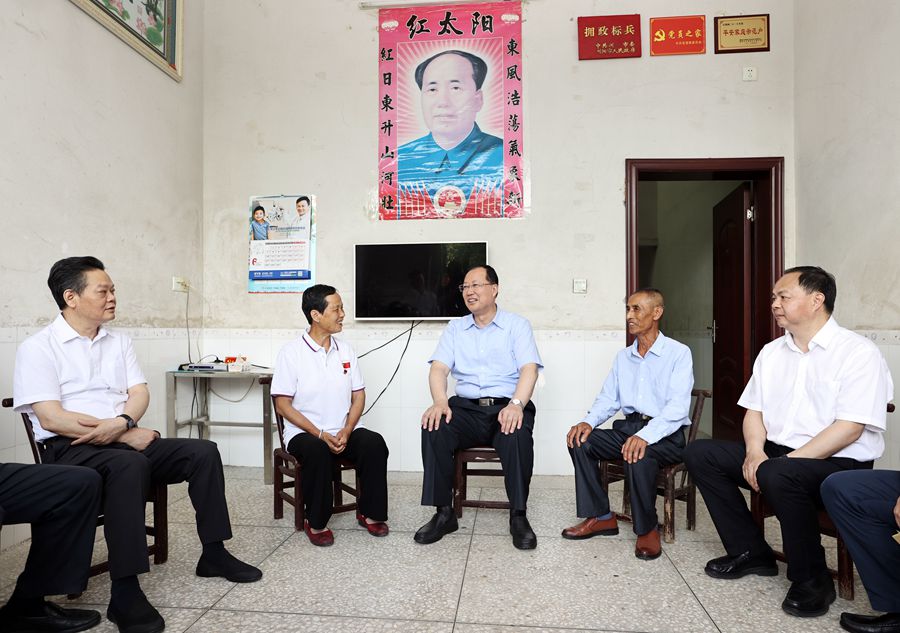 6月23日,省委副书记、省长毛伟明在浏阳市官渡镇田效村慰问老党员李观连同志。