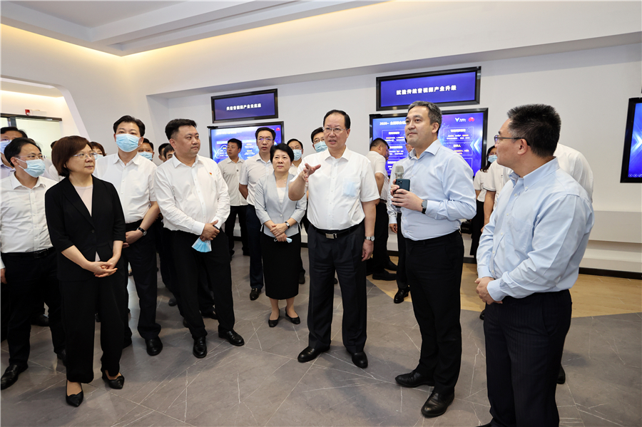 9月8日,省委副书记、省长毛伟明在马栏山视频文创产业园创智园1号栋展厅调研。