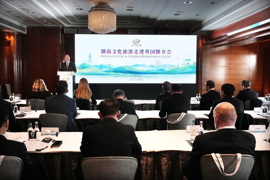 风光旖旎、人文独韵的湖南正成为英国游客的热门“打卡地”。去年,全省接待入境游客322.4万人次,其中英国游客数量增长72.9%。“千年文脉邀知己,万象潇湘会英伦。”在“三湘四水·相约湖南”走进英国文化旅游推介会上,毛伟明成为湖南文旅“代言人”,诚邀大家在湖南和英国的两种秀丽风光中共赏山水诗意、在两种文化辉映中对话千年文明、在两种时尚潮流中碰撞灵感火花,感受“湖南魅力+英伦经典”的独特风情。