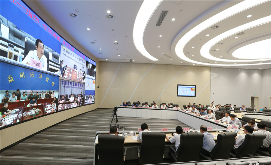 许达哲与岳阳、常德、益阳等市进行视频连线,了解各地水情、灾情和防汛救灾工作开展情况。