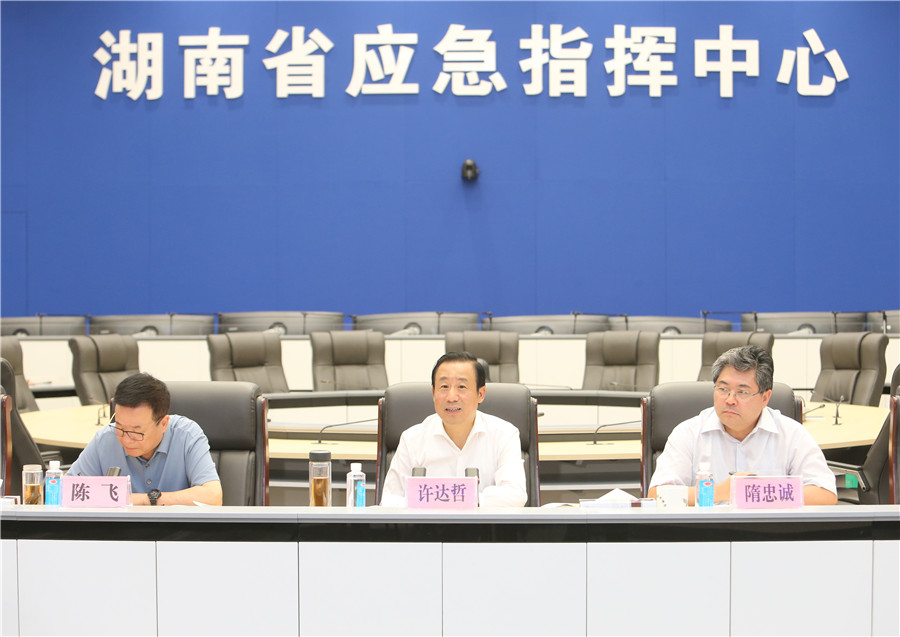 7月11日晚上,省委副书记、省长许达哲赴省应急指挥中心调度部署防汛抗灾工作。