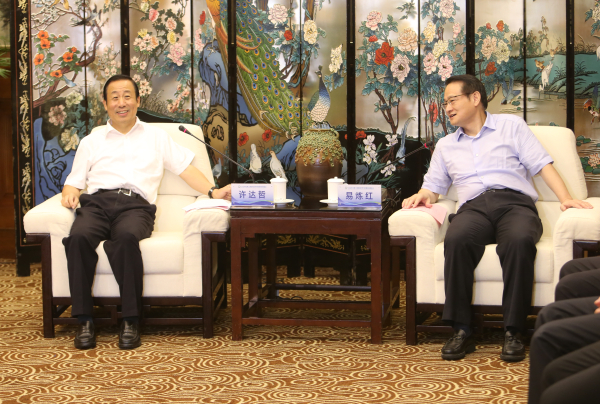 9月4日下午,参加第十二届泛珠三角区合作与发展论坛暨经贸洽谈会的省委副书记、省长许达哲在广州与江西省委副书记、代省长易炼红一行举行会谈。湖南日报记者 赵持 摄