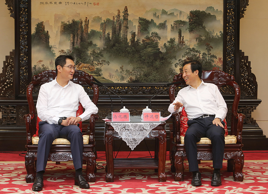 省委副书记、省长许达哲与腾讯公司董事会主席兼首席执行官马化腾座谈并共同见证签约。